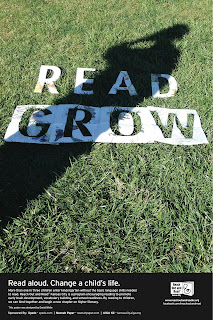 In my three posters I chose to follow the path of limited text. I wanted the phrases I used to be short, affirmative, and immediately understood. I also wanted to maintain a childish context. In the Read & Soar poster, the rendering style suggests this childishness. In the seed poster, the letterforms and playful colors suggest haptic quality of a child's handwriting. The Read Grow poster maintains the child context withe the children's books that were used to make the letterforms.